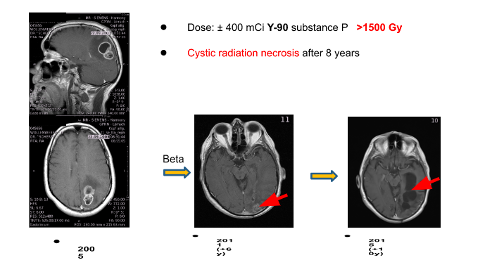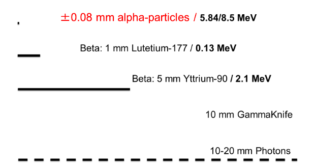Alpha particles do not destroy adjacent neurons Minimal damage possible (subclinical) Alpha particles suitable to target functional areas Caveat: repetitive injections, pre-treatment